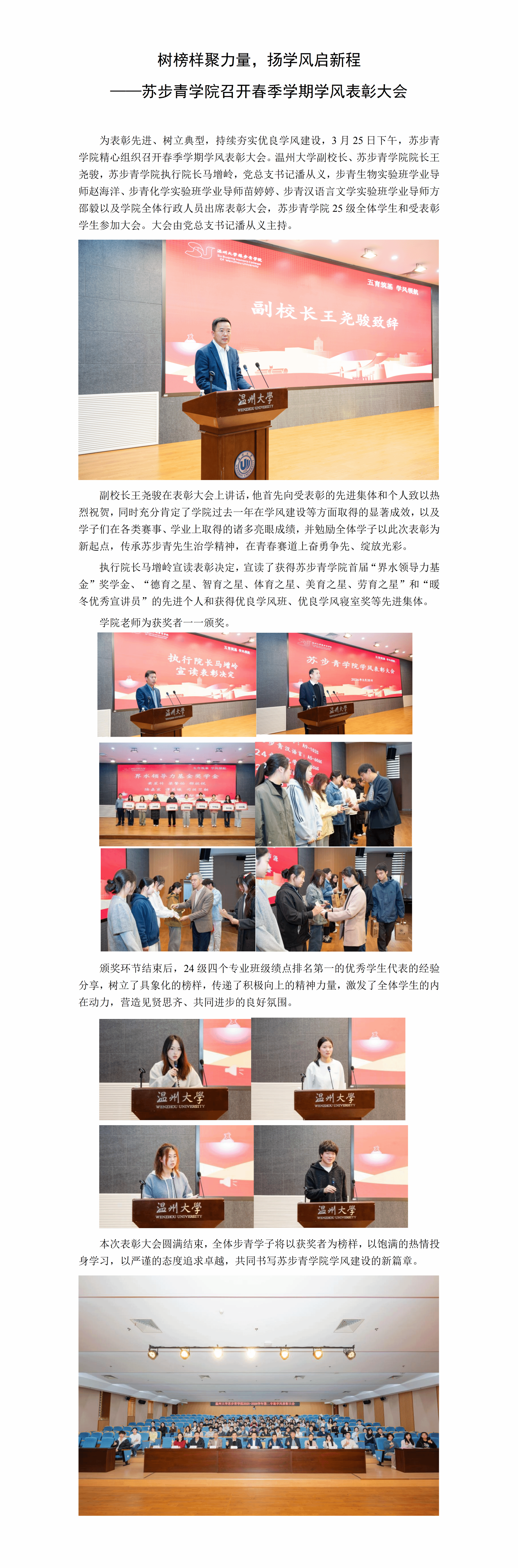 树榜样聚力量,扬学风启新程 ——苏步青学院召开春季学期学风表彰大会